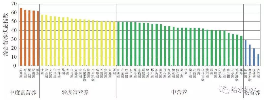 2016年中國重要湖泊營養(yǎng)狀態(tài)比較(中國環(huán)境狀況公報(bào))