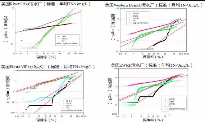 美國4座極限脫氮除磷污水廠出水氮指標(biāo)的概率統(tǒng)計(jì)